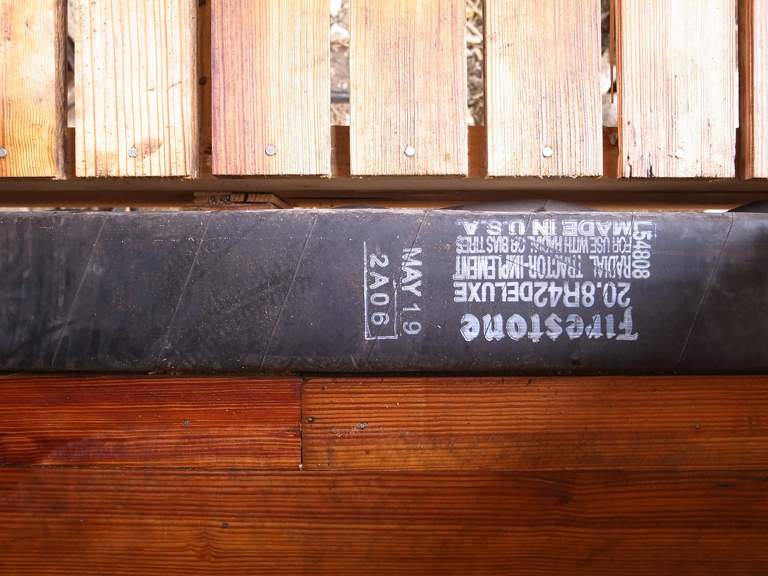 We discovered a cutting technique that would allow us to unroll the myriad used tractor tire inner tubes on the property as flat sheets. We used these synthetic rubber sheets as gasketing between materials, roof flashing, and thresholds for openings.